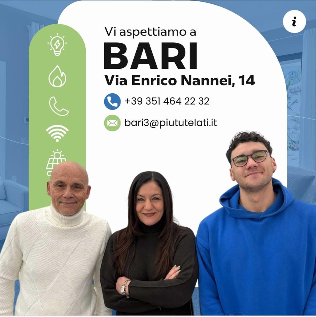 Da +tutelati Bari scegli tariffe con prezzo stabile, senza rimodulazioni e senza call center.