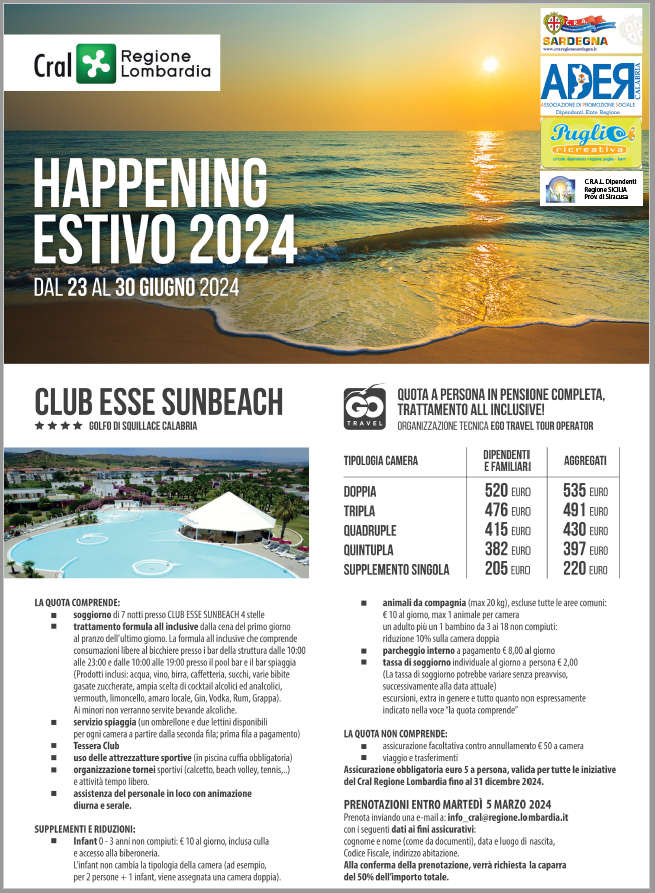 In collaborazione con Cral Lombardia, Cral Sicilia, Cral Calabria e Cral Sardegna
