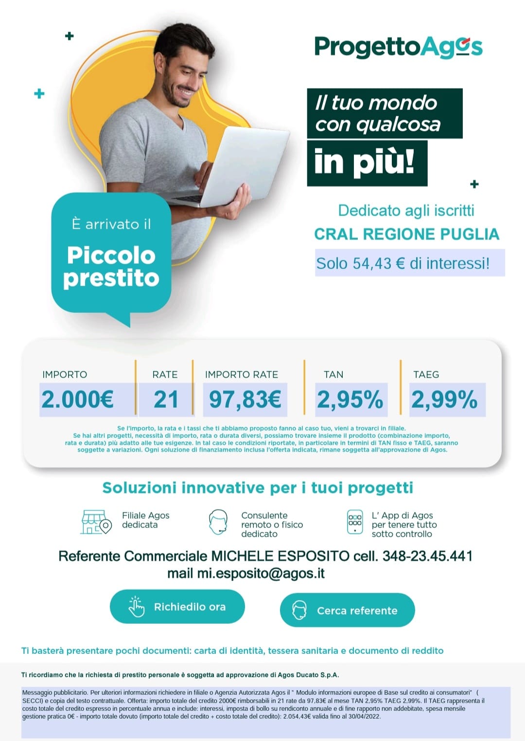 Per gli iscritti Cral Regione Puglia, piccolo prestito Agos.......
