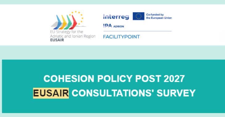 La consultazione sul futuro della politica di coesione oltre il 2027 è condotta dal Facility Point dell'EUSAIR (IPA ADRION 2021 – 2027) insieme a StEP (IPA ADRION 2021 – 2027) e con il supporto della società M&E Factory.