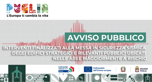Con Determina Dirigenziale n. 98 del 22/09/2025, pubblicata sul Bollettino Ufficiale della Regione Puglia n. 81 del 9/10/2025, è stata approvata la graduatoria definitiva e versione definitiva dello schema di Disciplinare regolante i rapporti tra la Regione Puglia e i Beneficiari inerente l’Avviso pubblico PR Puglia FESR-FSE+ 2021-2027 - Asse Prioritario II “Economia verde” - Azione 2.5 “Interventi per la prevenzione dei rischi e l’adattamento climatico” - sub-Azione 2.5.2 “Messa in sicurezza sismica degli edifici strategici e rilevanti pubblici ubicati nelle aree maggiormente a rischio”.