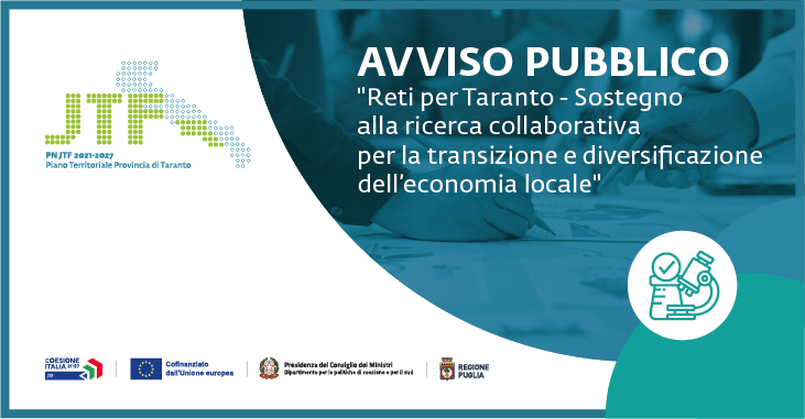 Avviso pubblico “Reti per Taranto - Sostegno alla ricerca collaborativa per la transizione e diversificazione dell'economia locale”